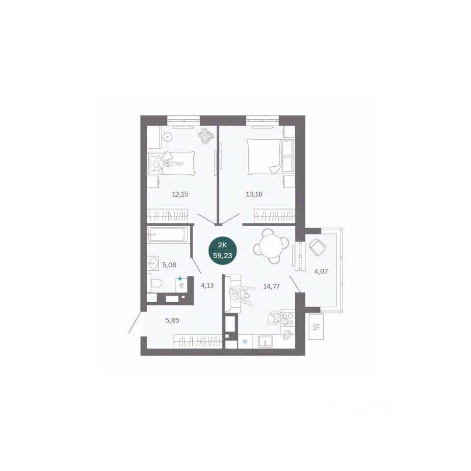 Общая площадь59 м²