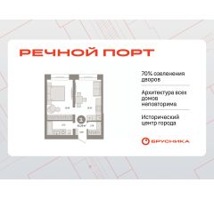 Квартира с кухней-гостиной и одной спальней в жилом районе "Речной порт". Особенности планировки: гардеробная, предчистовая отделка.