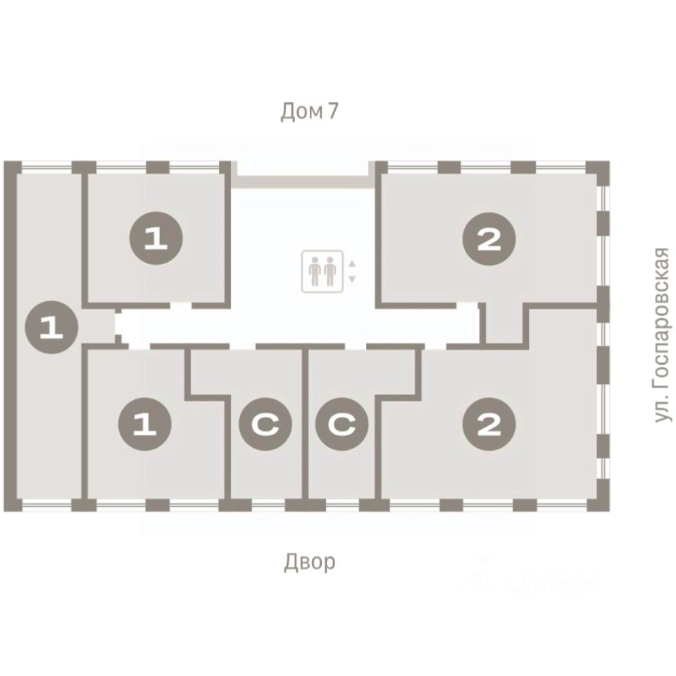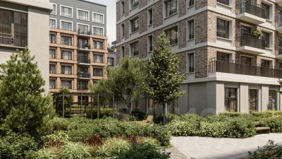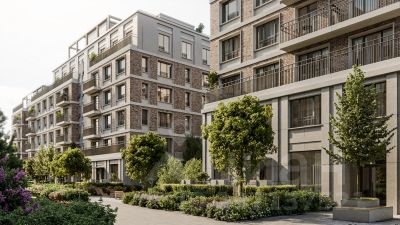 Квартира с кухней-гостиной и одной спальней в жилом районе "Речной порт". Особенности планировки: гардеробная, вид во двор, предчистовая отделка, балкон.
