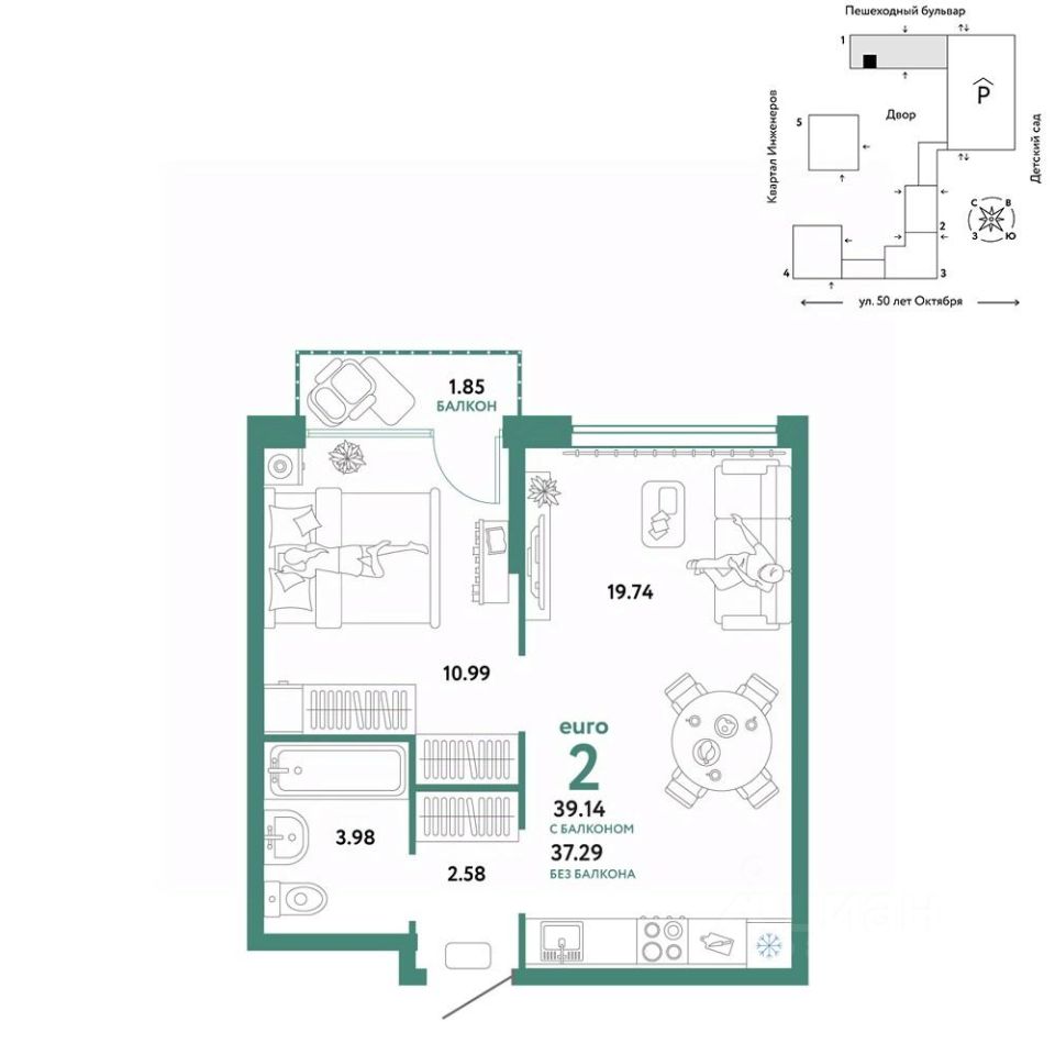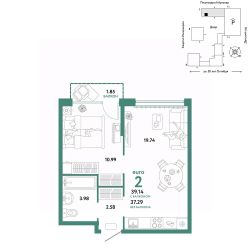 Продается 2комнатная квартира на 3 этаже от застройщика Страна Девелопмент. Площадь квартиры 39,76 кв. м. Стоимость указана без учета акций.