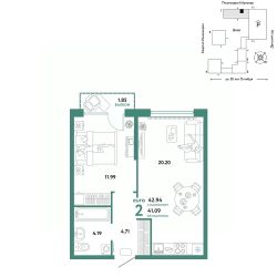 Продается 2комнатная квартира на 4 этаже от застройщика Страна Девелопмент. Площадь квартиры 42,84 кв. м. Стоимость указана без учета акций.