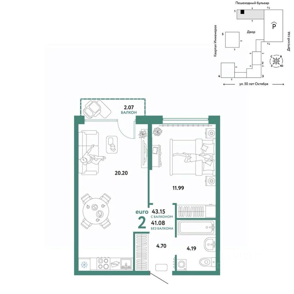 Продается 2комнатная квартира на 7 этаже от застройщика Страна Девелопмент. Площадь квартиры 43,04 кв. м. Стоимость указана без учета акций.