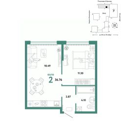 Продается 2комнатная квартира на 8 этаже от застройщика Страна Девелопмент. Площадь квартиры 38,01 кв. м. Стоимость указана без учета акций.