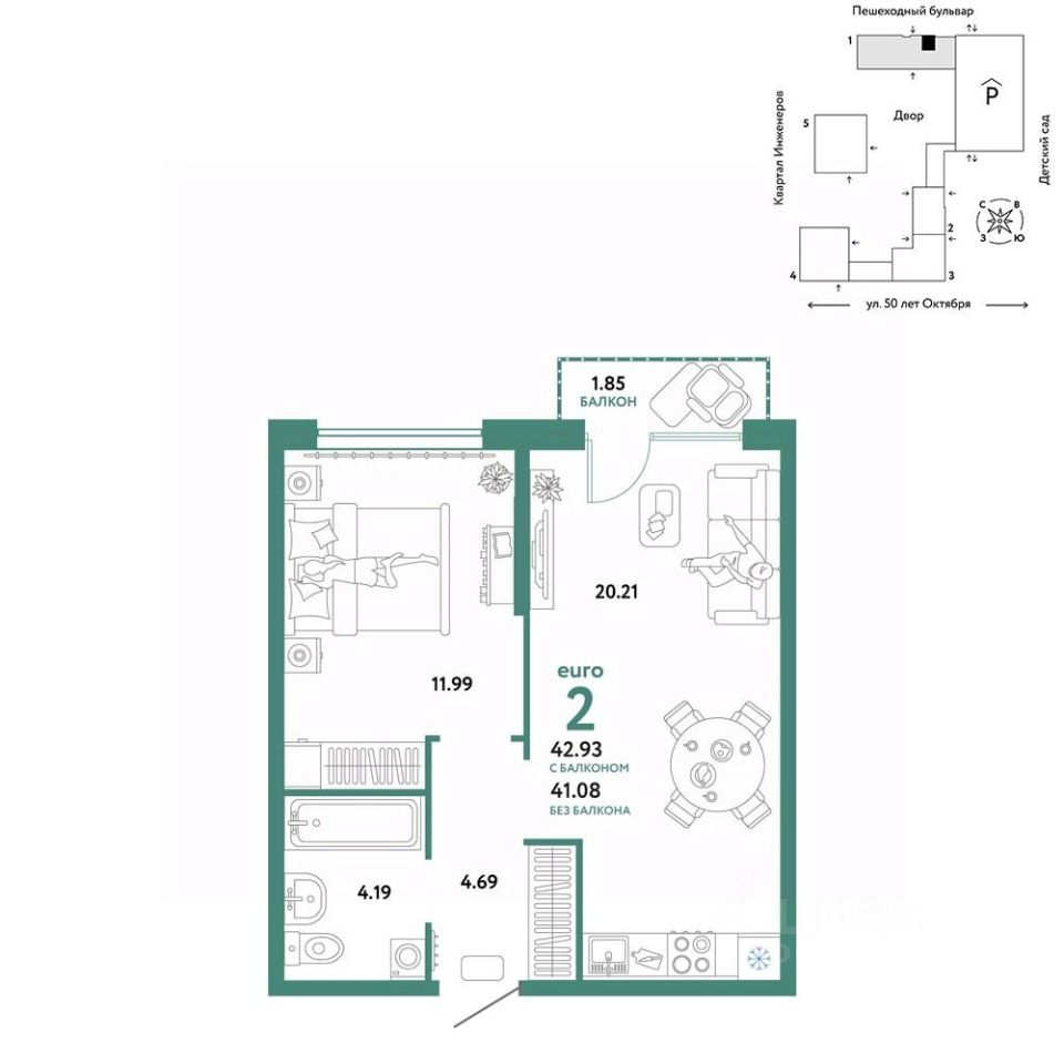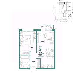 Продается 2комнатная квартира на 9 этаже от застройщика Страна Девелопмент. Площадь квартиры 42,83 кв. м. Стоимость указана без учета акций.
