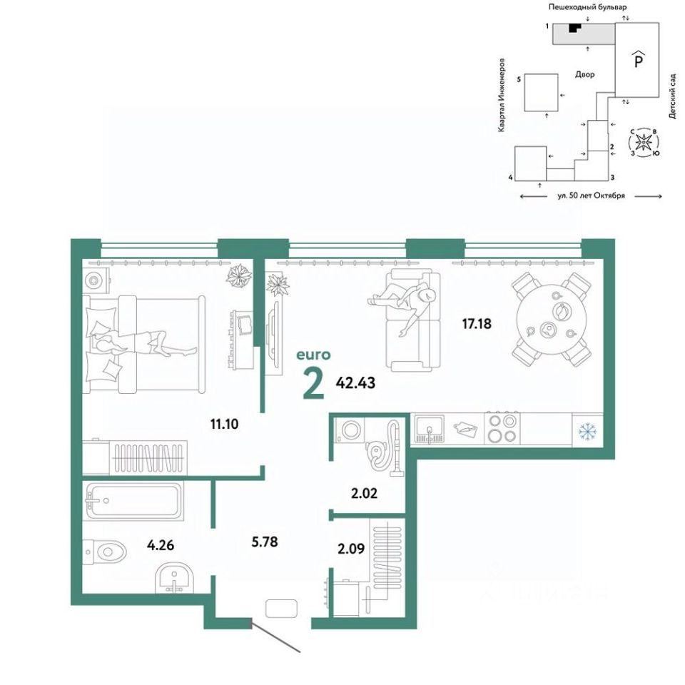 Продается 2комнатная квартира на 11 этаже от застройщика Страна Девелопмент. Площадь квартиры 43,32 кв. м. Стоимость указана без учета акций.