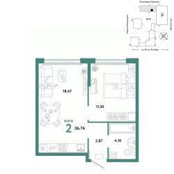 Продается 2комнатная квартира на 12 этаже от застройщика Страна Девелопмент. Площадь квартиры 38,01 кв. м. Стоимость указана без учета акций.
