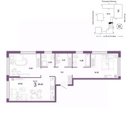 Продается 3комнатная квартира на 4 этаже от застройщика Страна Девелопмент. Площадь квартиры 69,4 кв. м. Стоимость указана без учета акций.