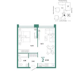 Продается 2комнатная квартира на 8 этаже от застройщика Страна Девелопмент. Площадь квартиры 41,31 кв. м. Стоимость указана без учета акций.