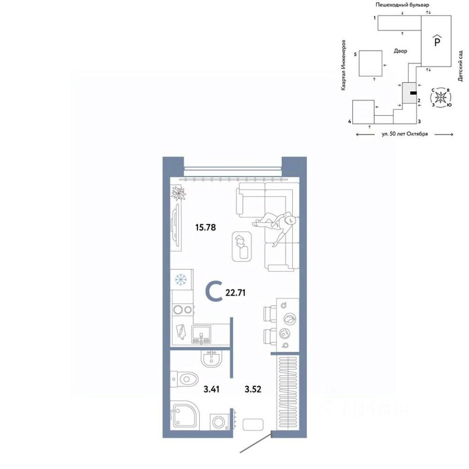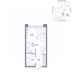 Продается студия квартира на 10 этаже от застройщика Страна Девелопмент. Площадь квартиры 22,72 кв. м. Стоимость указана без учета акций.