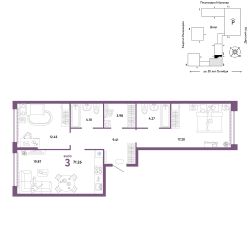 Продается 3комнатная квартира на 7 этаже от застройщика Страна Девелопмент. Площадь квартиры 71,26 кв. м. Стоимость указана без учета акций.