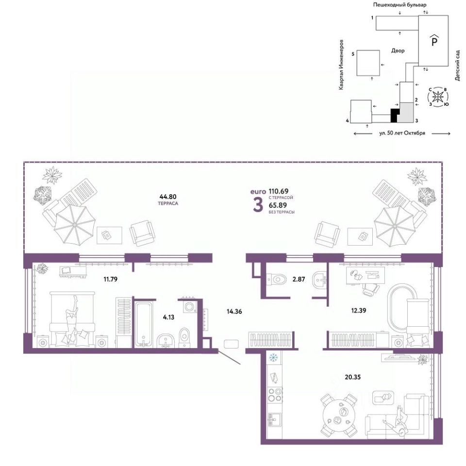 Продается 3комнатная квартира на 12 этаже от застройщика Страна Девелопмент. Площадь квартиры 113,69 кв. м. Стоимость указана без учета акций.