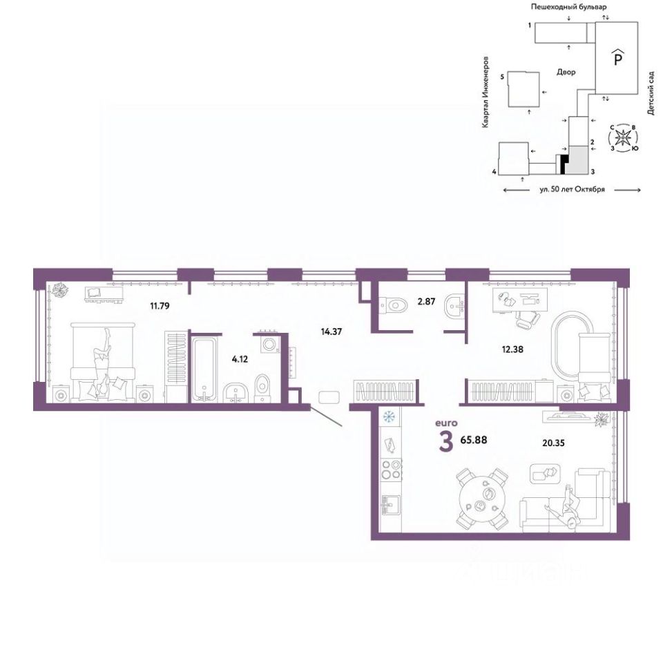 Продается 3комнатная квартира на 13 этаже от застройщика Страна Девелопмент. Площадь квартиры 66,01 кв. м. Стоимость указана без учета акций.