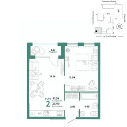Продается 2комнатная квартира на 5 этаже от застройщика Страна Девелопмент. Площадь квартиры 41,56 кв. м. Стоимость указана без учета акций.
