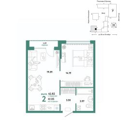 Продается 2комнатная квартира на 9 этаже от застройщика Страна Девелопмент. Площадь квартиры 42,7 кв. м. Стоимость указана без учета акций.