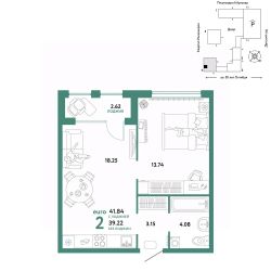 Продается 2комнатная квартира на 10 этаже от застройщика Страна Девелопмент. Площадь квартиры 41,84 кв. м. Стоимость указана без учета акций.