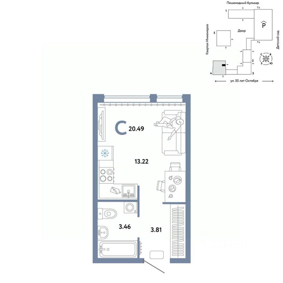 Продается студия квартира на 15 этаже от застройщика Страна Девелопмент. Площадь квартиры 20,04 кв. м. Стоимость указана без учета акций.