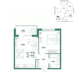 Продается 2комнатная квартира на 16 этаже от застройщика Страна Девелопмент. Площадь квартиры 44,77 кв. м. Стоимость указана без учета акций.
