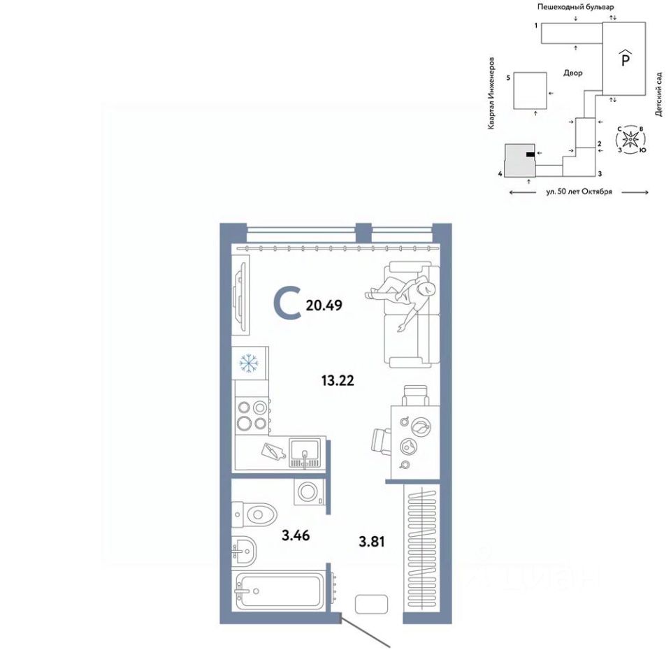 Продается студия квартира на 17 этаже от застройщика Страна Девелопмент. Площадь квартиры 20,37 кв. м. Стоимость указана без учета акций.
