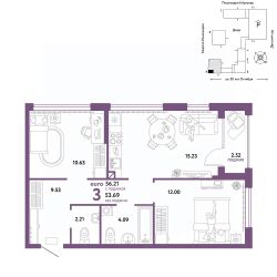 Продается 3комнатная квартира на 22 этаже от застройщика Страна Девелопмент. Площадь квартиры 56,21 кв. м. Стоимость указана без учета акций.