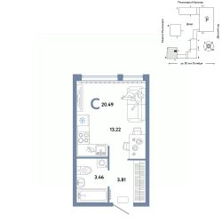 Продается студия квартира на 24 этаже от застройщика Страна Девелопмент. Площадь квартиры 20,37 кв. м. Стоимость указана без учета акций.