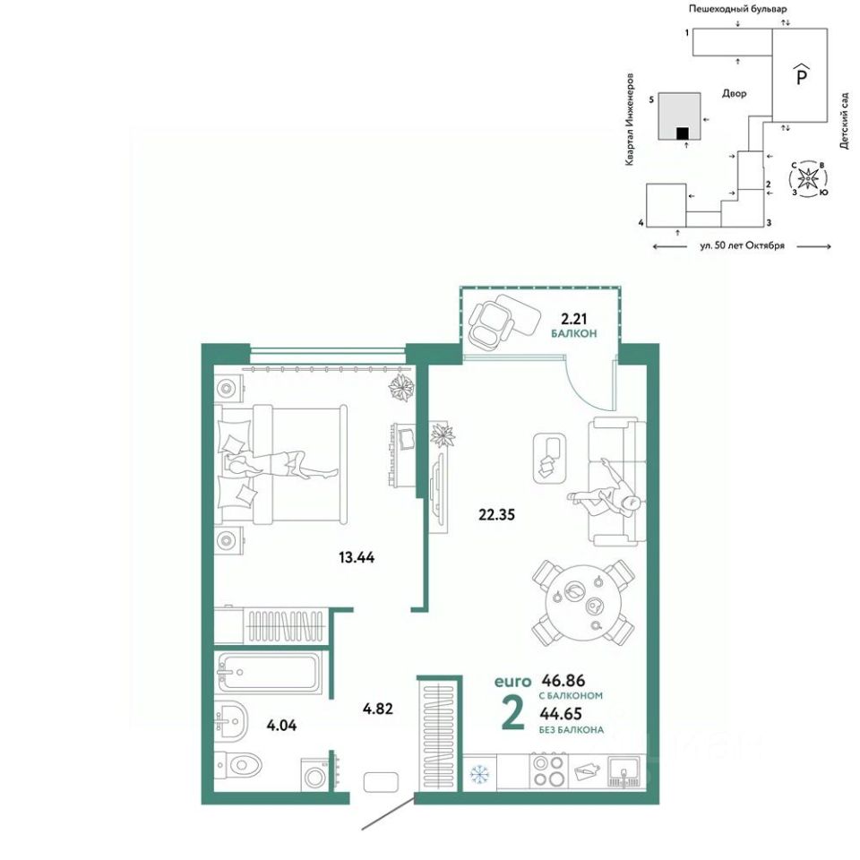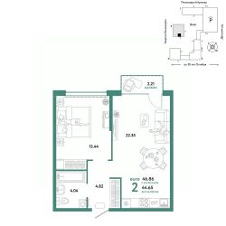 Продается 2комнатная квартира на 7 этаже от застройщика Страна Девелопмент. Площадь квартиры 46,81 кв. м. Стоимость указана без учета акций.