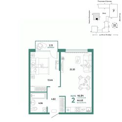 Продается 2комнатная квартира на 8 этаже от застройщика Страна Девелопмент. Площадь квартиры 46,79 кв. м. Стоимость указана без учета акций.