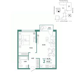 Продается 2комнатная квартира на 12 этаже от застройщика Страна Девелопмент. Площадь квартиры 46,73 кв. м. Стоимость указана без учета акций.