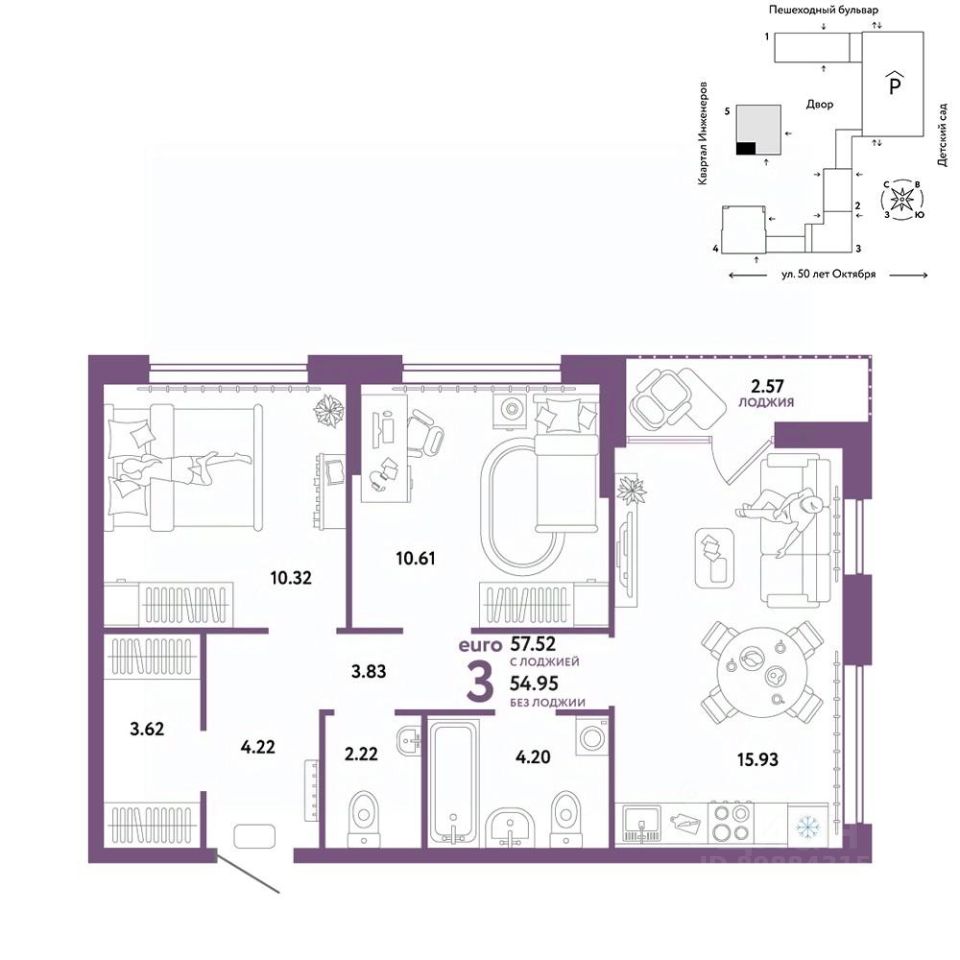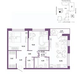 Продается 3комнатная квартира на 14 этаже от застройщика Страна Девелопмент. Площадь квартиры 57,43 кв. м. Стоимость указана без учета акций.