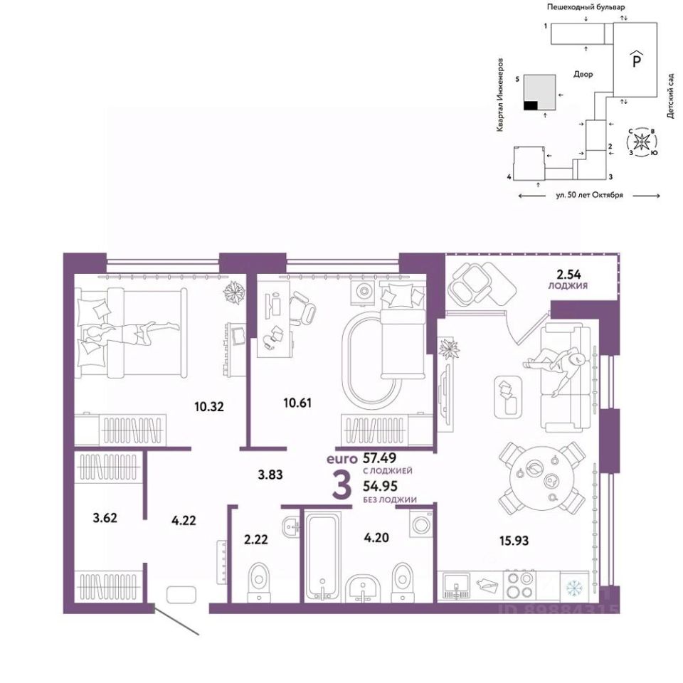 Продается 3комнатная квартира на 15 этаже от застройщика Страна Девелопмент. Площадь квартиры 57,31 кв. м. Стоимость указана без учета акций.