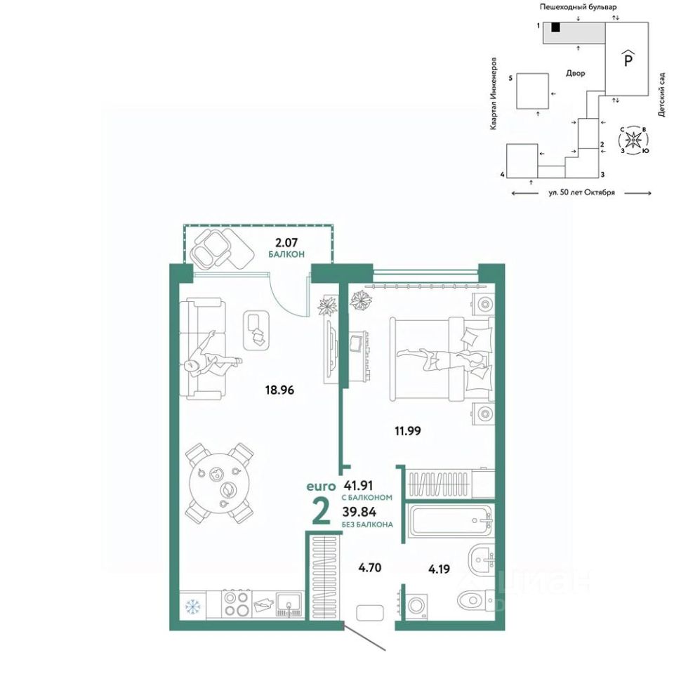 Продается 2комнатная квартира на 4 этаже от застройщика Страна Девелопмент. Площадь квартиры 41,8 кв. м. Стоимость указана без учета акций.