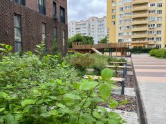 Закрытый двор, уютный , зеленый с зоной отдыха и детской площадкой.