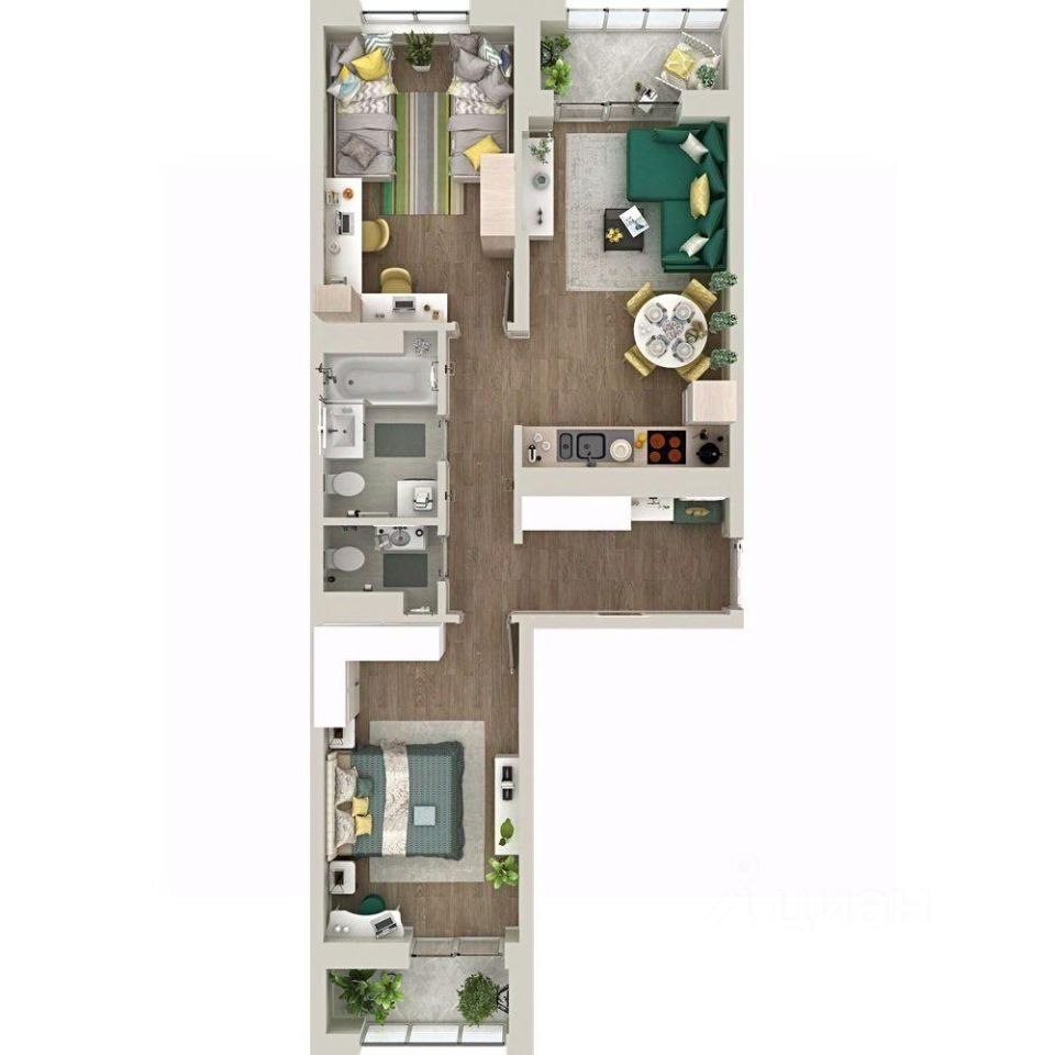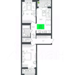 Продаётся 2-комнатная квартира в строящемся доме (Д4.2 (Малкова, 3)), срок сдачи: III-кв. 2026, общей площадью 67.22 кв.м., на 13 этаже. Компания 4D приступила к строительству нового жилого комплекса "Гранд квартал". Новый ЖК находится в зеленой зоне Калининского района, южнее микрорайона Тюменская слобода.