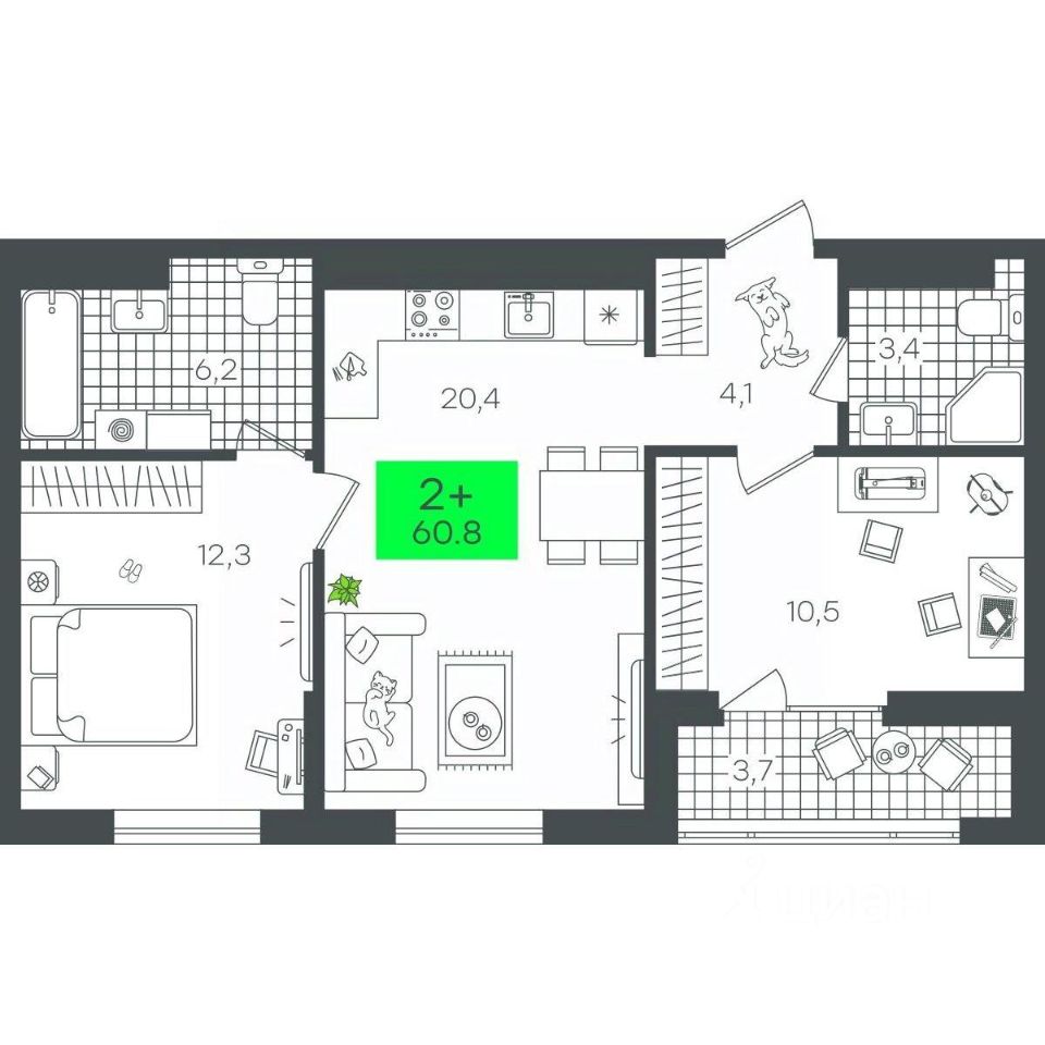 Продаётся 2-комнатная квартира в строящемся доме (Д4.2 (Малкова, 3)), срок сдачи: III-кв. 2026, общей площадью 60.86 кв.м., на 17 этаже. Компания 4D приступила к строительству нового жилого комплекса "Гранд квартал". Новый ЖК находится в зеленой зоне Калининского района, южнее микрорайона Тюменская слобода.