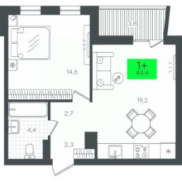 Квартира 1+ с двумя окнами в спальне и лоджией. Высота потолков - 3,35м. В квартире предусмотрены ниши под хранение в спальне и прихожей. В кухне-гостиной предусмотрена ниша под размещение кухонного гарнитура. Кухня-гостиная легко зонируется на обеденную и гостевую зону. Лоджия расширит возможности для времяпрепровождения дома, здесь можно организовать зону для отдыха и хобби. Гранд Квартал, 2-Д7.1, 9, 1, квартира 71