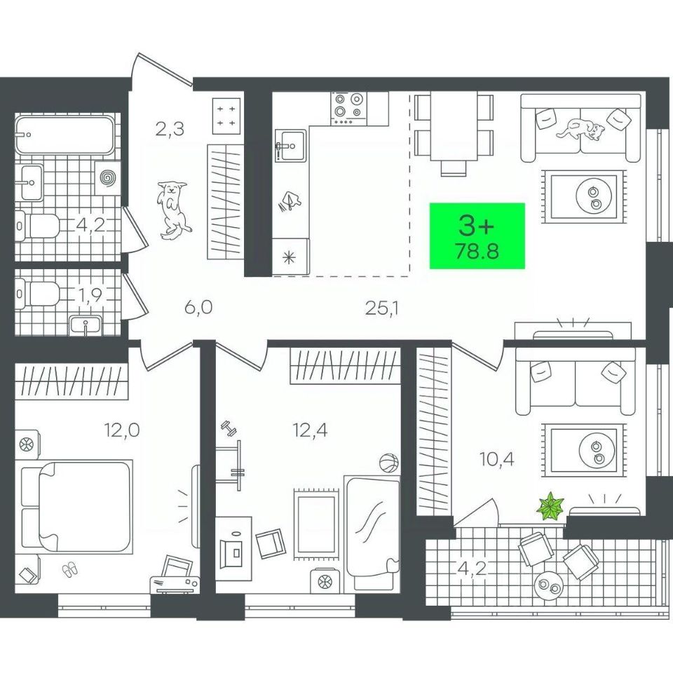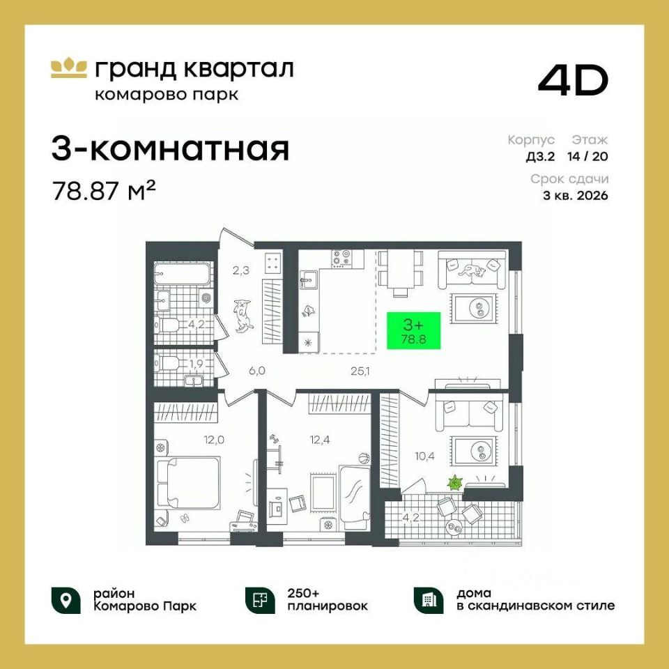 Продаётся 3-комнатная квартира в строящемся доме (1-Д3.2 (Глебова, 10)), срок сдачи: III-кв. 2026, общей площадью 78.87 кв.м., на 14 этаже. Компания 4D приступила к строительству нового жилого комплекса "Гранд квартал". Новый ЖК находится в зеленой зоне Калининского района, южнее микрорайона Тюменская слобода.