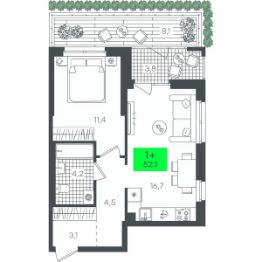 Продаётся 1-комнатная квартира в строящемся доме (3-В6.1 (Малкова, 15)), срок сдачи: III-кв. 2026, общей площадью 52.18 кв.м., на 1 этаже. Компания 4D приступила к строительству нового жилого комплекса "Гранд квартал". Новый ЖК находится в зеленой зоне Калининского района, южнее микрорайона Тюменская слобода.