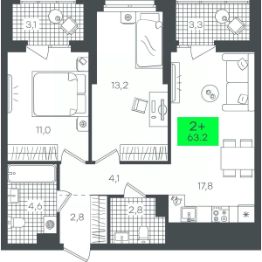 Продаётся 2-комнатная квартира в строящемся доме (3-В6.1 (Малкова, 15)), срок сдачи: III-кв. 2026, общей площадью 63.21 кв.м., на 12 этаже. Компания 4D приступила к строительству нового жилого комплекса "Гранд квартал". Новый ЖК находится в зеленой зоне Калининского района, южнее микрорайона Тюменская слобода.