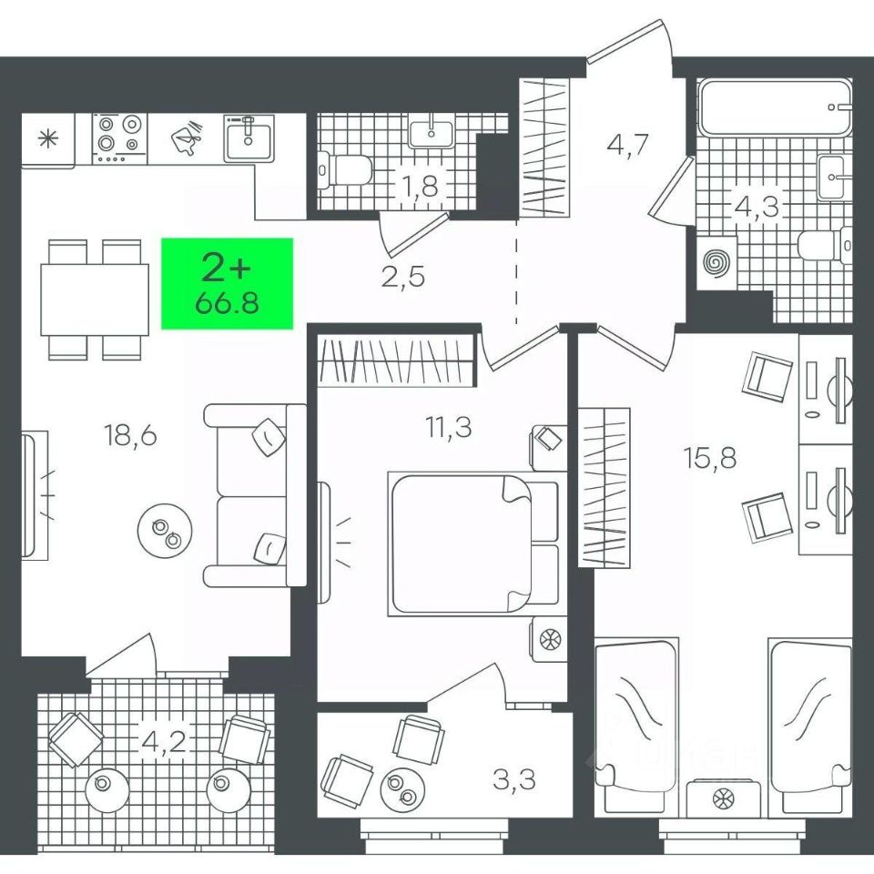 Продаётся 2-комнатная квартира в строящемся доме (3-В6.1 (Малкова, 15)), срок сдачи: III-кв. 2026, общей площадью 66.89 кв.м., на 20 этаже. Компания 4D приступила к строительству нового жилого комплекса "Гранд квартал". Новый ЖК находится в зеленой зоне Калининского района, южнее микрорайона Тюменская слобода.