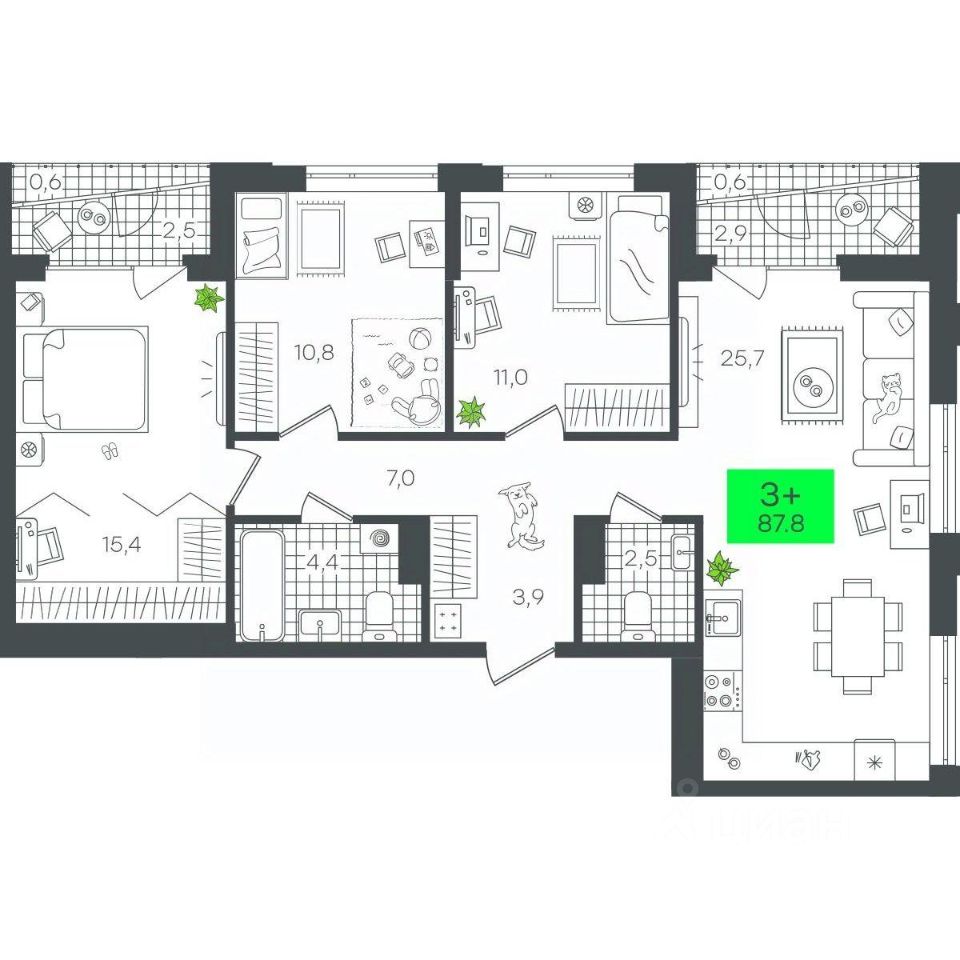 Продаётся 3-комнатная квартира в строящемся доме (1-Д3.1 (Глебова, 10)), срок сдачи: III-кв. 2026, общей площадью 87.83 кв.м., на 6 этаже. Компания 4D приступила к строительству нового жилого комплекса "Гранд квартал". Новый ЖК находится в зеленой зоне Калининского района, южнее микрорайона Тюменская слобода.