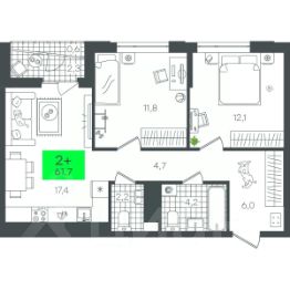 Продаётся 2-комнатная квартира в строящемся доме (1-Д3.1 (Глебова, 10)), срок сдачи: III-кв. 2026, общей площадью 61.73 кв.м., на 12 этаже. Компания 4D приступила к строительству нового жилого комплекса "Гранд квартал". Новый ЖК находится в зеленой зоне Калининского района, южнее микрорайона Тюменская слобода.