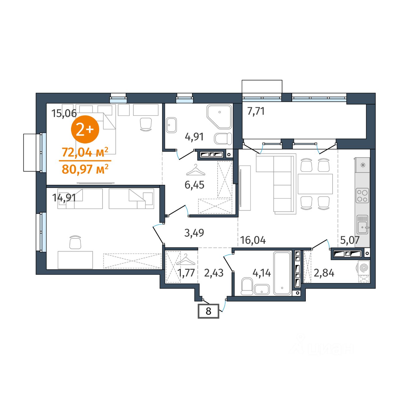 Предлагаем 2 - комнатную квартиру в доме ГП-1 (Этап 2) общей площадью: 72,04 кв.м., с типом планировки: Кухня-ниша. ЖК Этика - Культурные кварталы рядом с Алебашевским озером и тремя парками. Все что нужно для повседневного комфорта, от аптек, премиальных фитнес-клубов, студий йоги, гастропабов и супермаркетов, находится в пешей доступности. Особенности комплекса: "зеленый каркас" - пешеходная аллея, пронизывающая всю территорию, бульвар в центре комплекса, сквозные подъезды с прозрачными входными группами с уровня земли, оформление холлов в стилистике дорогих отелей, есть квартиры с отдельным входом и террасой, с окном в ванной и панорамным остеклением. Вскоре рядом с ЖК обустроят событийный парк "Алебашево". Вокруг озера проложат велодорожки, появится гастрономическая аллея, городской пляж, сцена на воде, прокат лодок и многое другое для семейного отдыха. 8 кварталов, спроектированных по принципу "дворы без машин", направлены на создание комфортной, городской среды. Этажность домов переменная: от 7 до 25 этажей. Срок сдачи 1 очереди: IV квартал 2026 г.