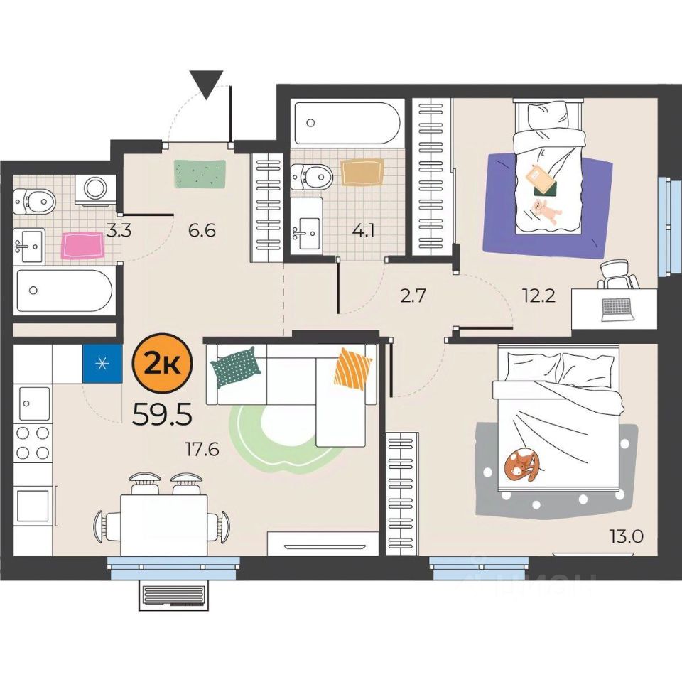 Общая площадь59,5 м²