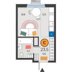 Общая площадь23,5 м²