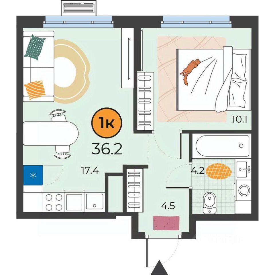 Общая площадь36,2 м²