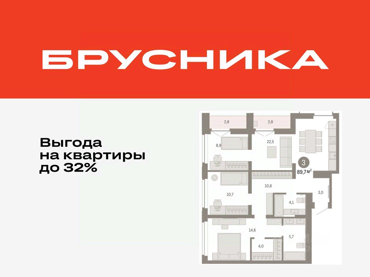 Продается 3-комн. квартира с предчистовой отделкой в ЖК "Республики 205" на 15 этаже. Общая площадь: 89.68 кв.м., жилая: 34.2 кв.м., площадь просторной кухни-гостиной: 22.5 кв.м. Квартира угловая, идеально подойдет любителям тишины и панорамных видов. В квартире две лоджии, два совмещенных санузла. Высота потолков 2.7 м.