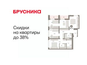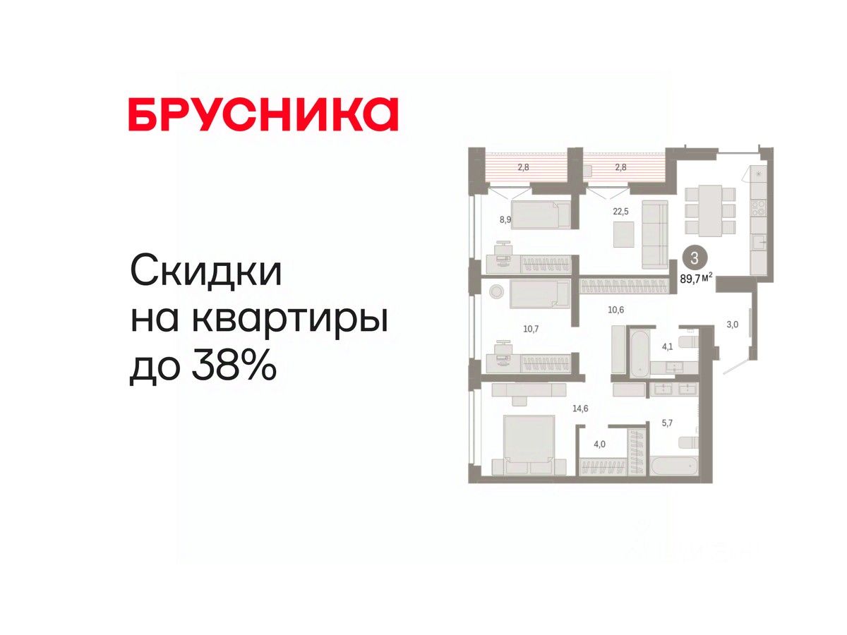 Просторная трехкомнатная квартира с предчистовой отделкой в ЖК "Республики 205" на 15 этаже. Общая площадь: 89.68 кв.м., жилая: 34.2 кв.м., площадь просторной кухни-гостиной: 22.5 кв.м. Квартира угловая, очень светлая, естественная вентиляция при открытии окон. В квартире две лоджии, два совмещенных санузла. Высота потолков 2.7 м.