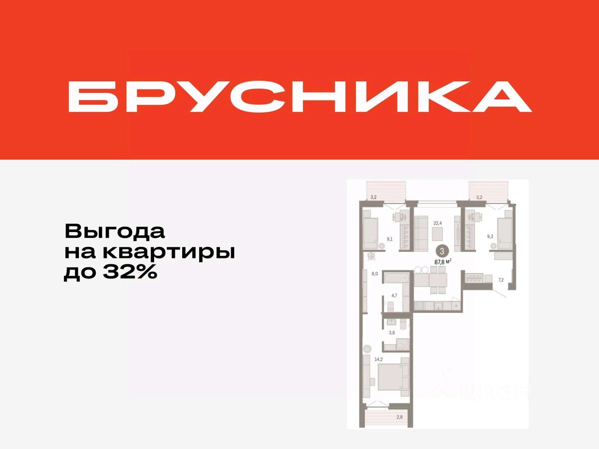 Продается 3-комн. квартира с предчистовой отделкой в ЖК "Республики 205" на 6 этаже. Общая площадь: 87.82 кв.м., жилая: 32.6 кв.м., площадь просторной кухни-гостиной: 22.4 кв.м. Квартира - распашонка, без проходных комнат, окна выходят на paзные стороны дома. В квартире три балкона, два совмещенных санузла. Высота потолков 2.7 м.