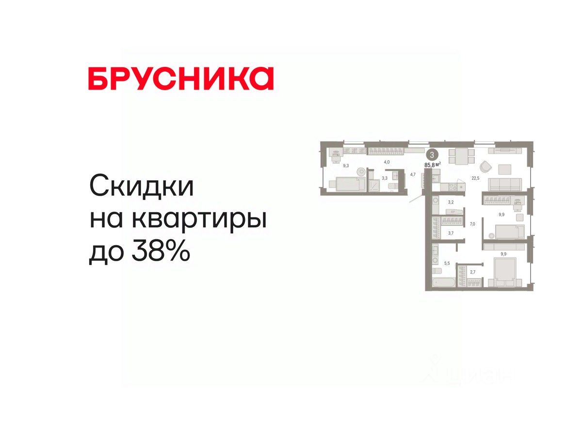 Трехкомнатная квартира от застройщика с предчистовой отделкой в ЖК "Республики 205" на 4 этаже. Общая площадь: 85.76 кв.м., жилая: 29.1 кв.м., площадь просторной кухни-гостиной: 22.5 кв.м. Квартира без проходных комнат, окна выходят нa три cтopoны дома. В квартире два совмещенных санузла. Высота потолков 2.7 м.