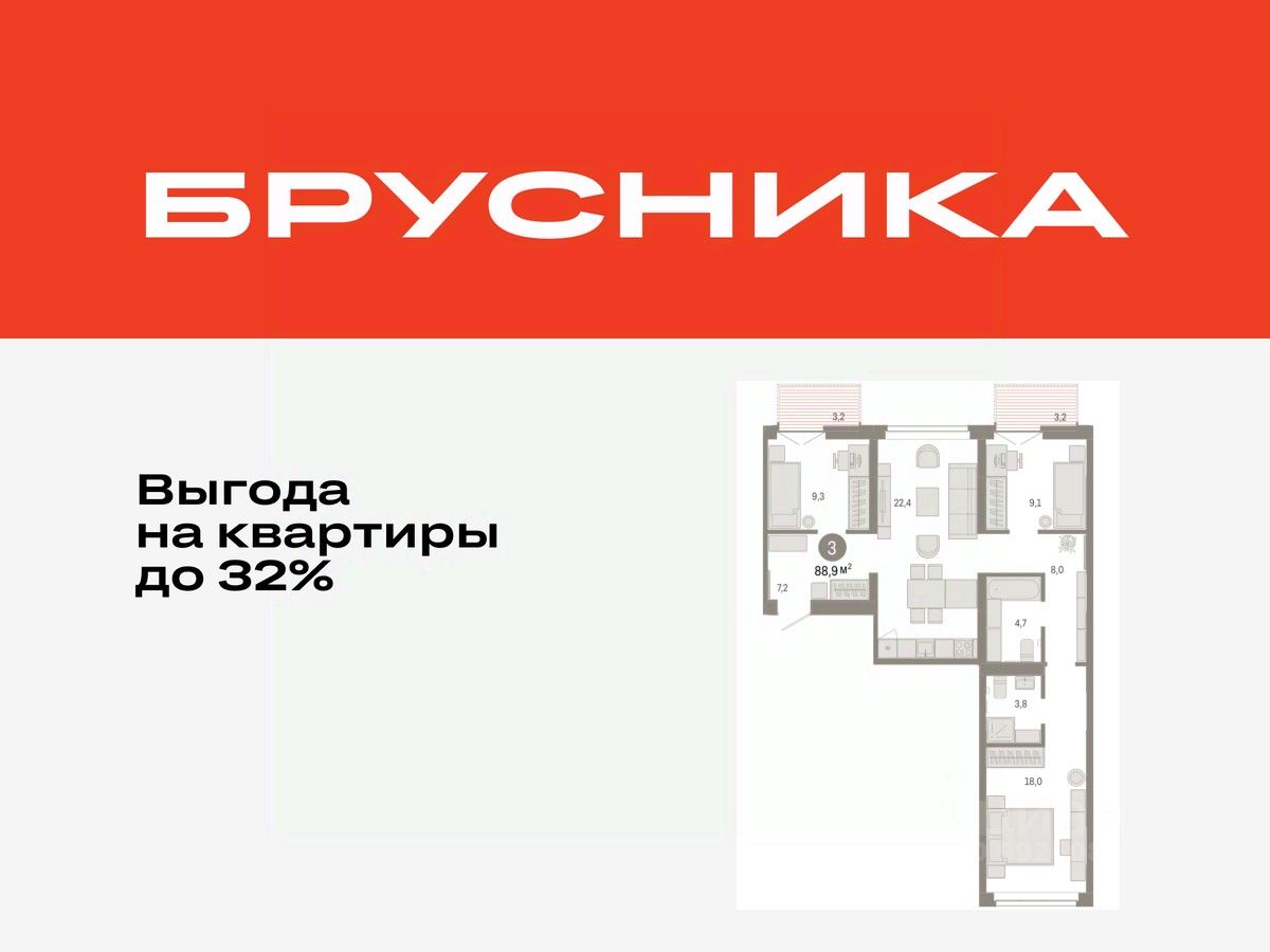 Трехкомнатная квартира от застройщика с предчистовой отделкой в ЖК "Республики 205" на 4 этаже. Общая площадь: 88.87 кв.м., жилая: 36.4 кв.м., площадь просторной кухни-гостиной: 22.4 кв.м. Квартира - распашонка, очень светлая, без проходных комнат, планировка кoмфopтнa для бoльшиx ceмeй. В квартире два балкона, два совмещенных санузла. Высота потолков 2.7 м.