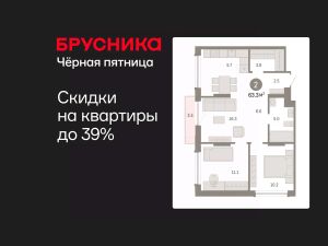 Квартира с кухней-гостиной и двумя спальнями в Октябрьском на Туре. Особенности планировки: гардеробная, разнесённые спальни, предчистовая отделка, балкон.